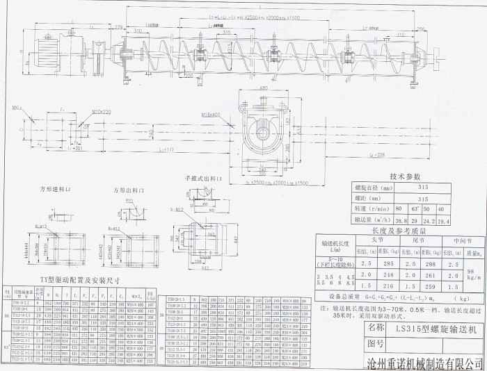 LS315螺旋输送机图纸