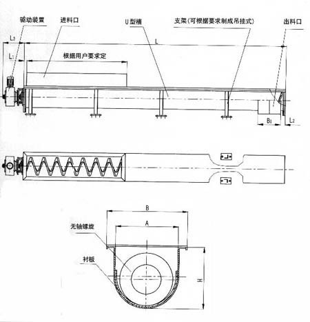WLS无轴螺旋输送机 WLS无轴螺旋输送机主要用于废水处理,造纸业、化学工业垃圾等行业输送站附性较强的物料,糊状粘稠物料(如化工原料、废纸浆、麦芽、污泥等)以及易缠绕物料(如生活垃圾),具有独特优势